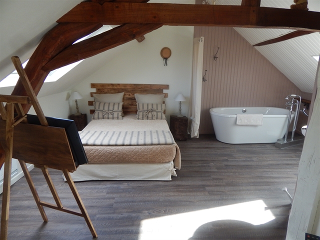 2 chambres mansardées avec lit en 140 cm,tv,accès wifi gratuit,baignoire,wc indépendant et sèche cheveux.